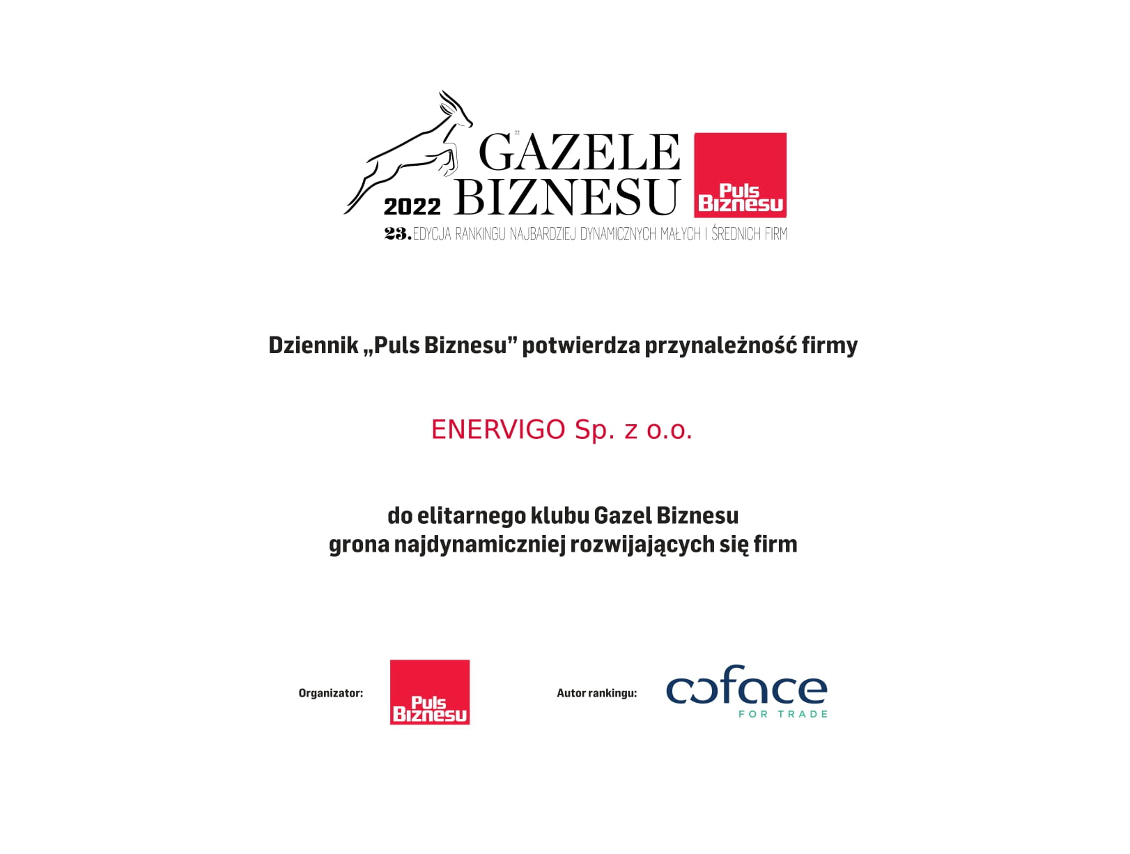 Enervigo w elitarnym klubie Gazel Biznesu, czyli gronie najbardziej dynamicznych małych i średnich firm